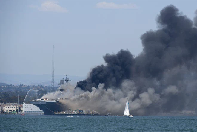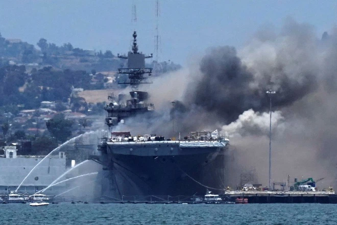 Hiện trường vụ cháy tàu đổ bộ tấn công USS Bonhomme Richard của Mỹ.