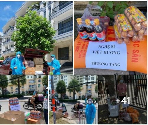 Tối 30/7, Việt Hương cập nhật trên trang cá nhân: "Là em, đi 14 điểm hôm hay, 1.070 bánh ngọt, 1.060 hộp sữa, 880 ký gạo, 690 trứng, mắm, cháo...