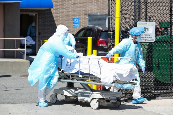 Nhân viên y tế chuyển thi thể nạn nhân Covid-19 tại New York vào năm 2020 (Ảnh: Getty).