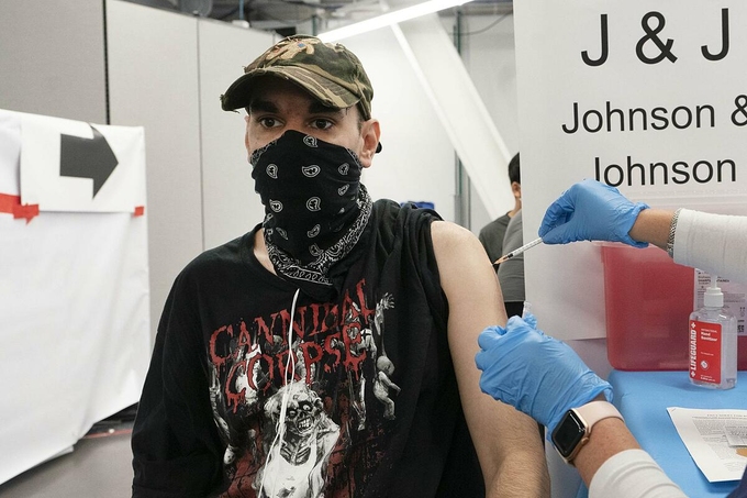 Jay Vojno tiêm vaccine Johnson & Johnson tại New York ngày 30/7. Ảnh: AP.