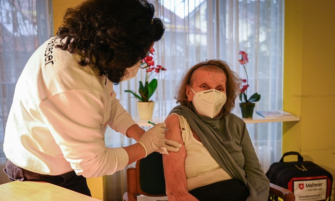 Nhân viên y tế tiêm vaccine Covid-19 cho một người cao tuổi ở Ottobrunn, Đức đầu năm nay. Ảnh: NYTimes.
