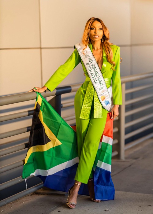 Thato Mosehle - đại diện Nam Phi - diện phong cách menswear với vest xẻ. Missosology đánh giá Mosehle là ứng viên hàng đầu của vương miện năm nay. Người đẹp 26 tuổi từng đoạt danh hiệu Á hậu 1 tại Miss South Africa năm ngoái. Cô hiện làm thực tập sinh tại một bệnh viện và mong muốn sớm trở thành bác sĩ chuyên nghiệp.