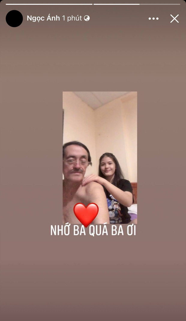 Hôm nay, Ngọc Ánh tiếp tục đăng tải ảnh chụp cùng người ba quá cố kèm lời nhắn: "Nhớ ba quá ba ơi". Có lẽ ngày tháng cùng ba chiến đấu với bệnh tật sẽ mãi là một phần ký ức không thể nào quên đối với cô con gái sinh năm 2004 của NS Giang Còi.