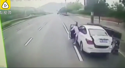 Sự việc xảy ra tại một con đường ở Lâm Châu, tỉnh Hà Nam, Trung Quốc. Vụ việc đã được camera hành trình ghi lại.