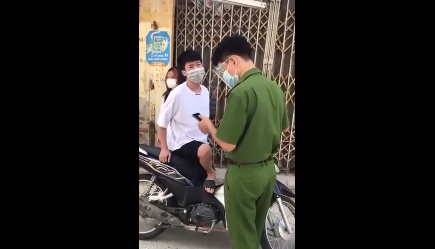Theo đó, một nam thanh niên chở theo bạn gái không đội mũ bảo hiểm chạy xe máy đi mua đồ vào buổi trưa. Khi di chuyển qua chốt kiểm soát, 1 cán bộ công an đã đề nghị kiểm tra giấy đi lại, tuy nhiên nam thanh niên này lại chống đối, "Tôi không cho ông kiểm tra đấy, ông là cái gì? Ông nghĩ ông là công an mà tôi sợ à".