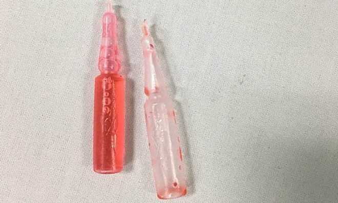 Thuốc diệt chuột Trung Quốc là dung dịch màu hồng trong ống nhựa, hoạt chất Fluoroacetate. Ảnh: Mai Thanh.