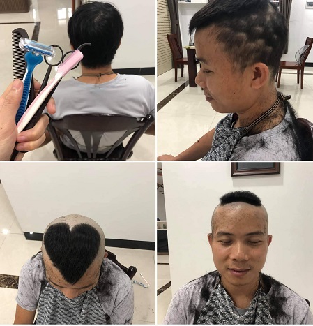 Kết quả là đầu anh chia thành ba kiểu, một bên dùng tông đơ nên khá chỉn chu, bên còn lại thủng từng mảng, còn đỉnh đầu thì lởm chởm. Bực mình, anh yêu cầu vợ cắt trọc. Chị Nguyệt sáng tạo hơn nên dùng dao cạo râu cạo nhẵn bóng, không còn nhìn thấy chân tóc. Ba hôm nay đến công ty làm, anh chồng đều phải đội mũ trong nhà.