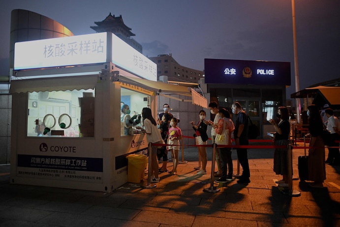 Một nhân viên y tế đang lấy mẫu xét nghiệm sàng lọc vào ngày 5/8 tại một nhà ga ở Bắc Kinh, Trung Quốc. Ảnh: Getty Images.