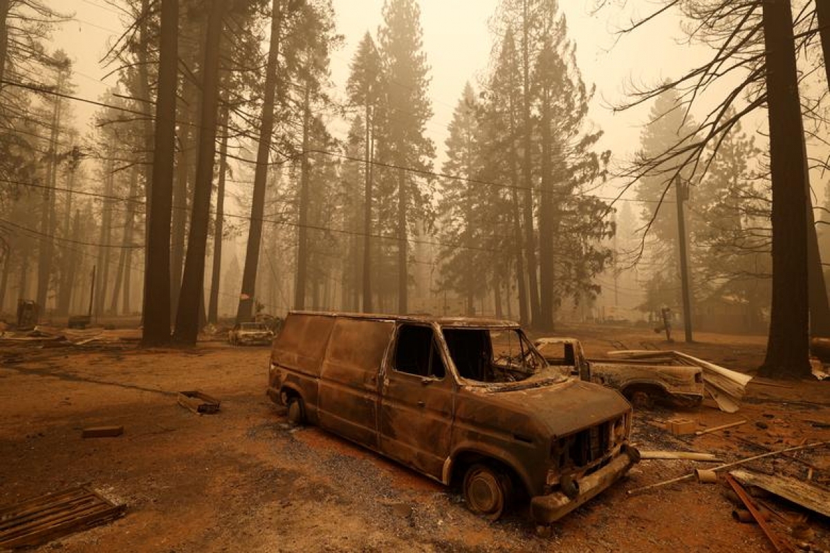 Chiếc ô tô bị cháy trơ khung sau đám cháy rừng Dixie gần thị trấn Canyondam, California, ngày 7/8/2021. Ảnh: Reuters