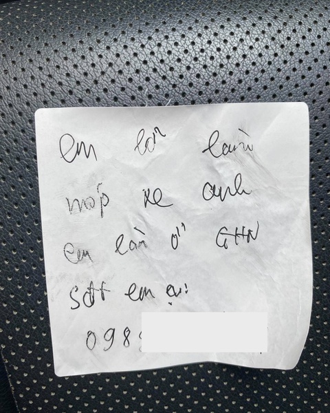 Trong tờ giấy, "thủ phạm" nói mình là nhân viên giao hàng của một công ty gần tòa chung cư. Do không cẩn thận, người này đã đâm vào xe của anh Tiến.