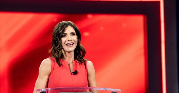 Thống đốc bang Nam Dakota Kristi L. Noem phát biểu tại Hội nghị Hành động Chính trị Bảo thủ hồi tháng hai. Ảnh: NYTimes.