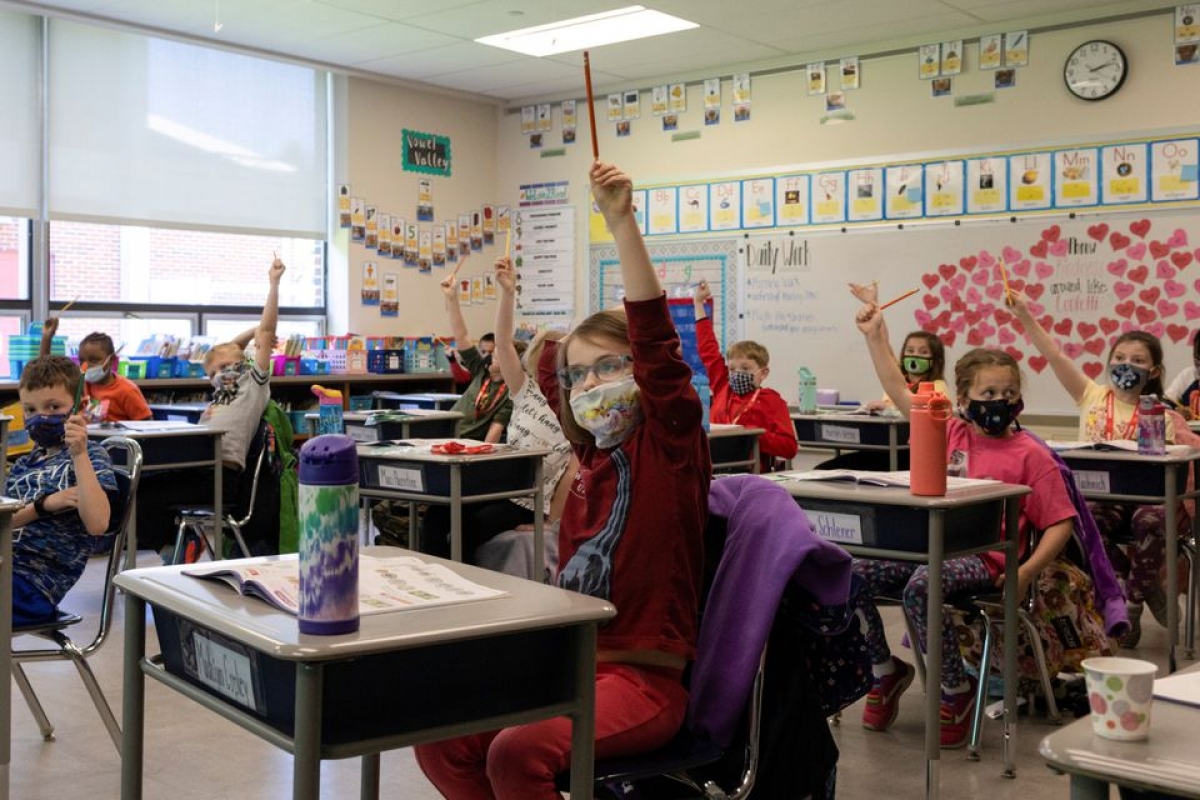Học sinh đeo khẩu trang trong một giờ học tại Trường Tiểu học Kratzer ở Allentown, Pennsylvania, Hoa Kỳ, ngày 13 tháng 4 năm 2021. Ảnh: REUTERS