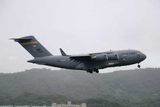 C-17 là máy bay quân sự đầu tiên của Mỹ hạ cánh xuống Đài Loan sau 40 năm trong khuôn khổ một hoạt động chính thức (Ảnh: Newsweek).