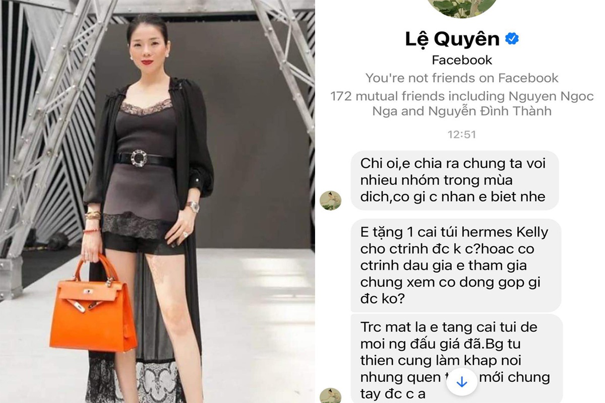 Mới đây, Xuân Lan hé lộ cuộc trò chuyện giữa cô với Lệ Quyên và cho biết giọng ca Ai khổ vì ai vừa ủng hộ một chiếc túi Hermes Kelly để đấu giá mua máy thở cho các bệnh viện chống dịch. Trong dòng tin nhắn, nữ ca sĩ chủ động ngỏ ý: “Em tặng một chiếc túi cho chương trình được không? Hoặc có chương trình đấu giá em tham gia chung, xem có đóng góp gì được không? Trước mắt là em tặng cái túi để mọi người đấu giá đã”.