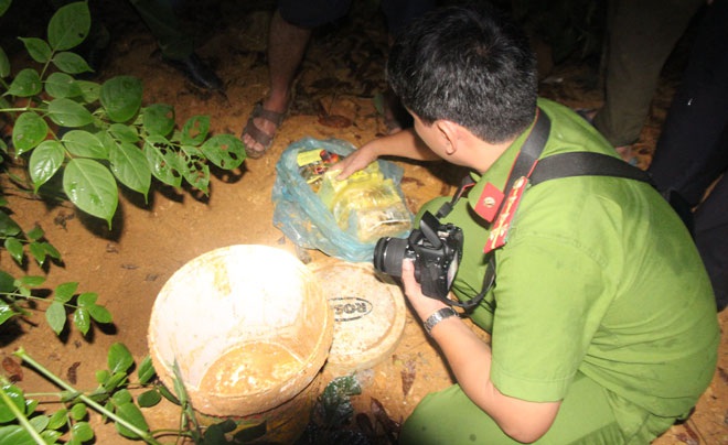Số ma túy công an thu giữ được tại vườn nhà bố mẹ đẻ của Đông vào tháng 9/2020. Trong vụ án này, Công an TP Vinh bắt giữ Trần Văn Khánh - bố của ông trùm Trần Văn Đông.