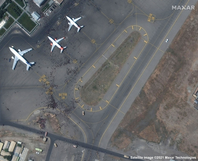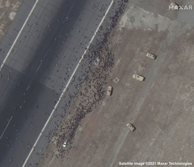 Dưới đây là loạt ảnh vệ tinh về việc người tị nạn ào ra khu vực đường băng sân bay hôm 16/8 được ABC News đăng tải dựa theo dữ liệu từ Maxar: