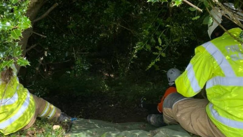 Lần theo tiếng kêu, nhóm cứu hộ tìm thấy nạn nhân bị rơi xuống một khe núi cao 21 m ở gần đó, BBC đưa tin hôm 16/8.
