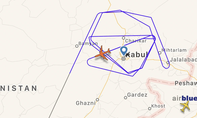 Phi cơ xuất phát từ căn cứ Al Udeid ở Qatar, sau đó bay qua biển Bắc Arab và Pakistan để tiến vào không phận Afghanistan. Máy bay lượn nhiều vòng ở độ cao hơn 9.400 m trong nhiều giờ, với tâm điểm là thủ đô Kabul và có thời điểm bay qua thành phố Jalalabad gần đó.