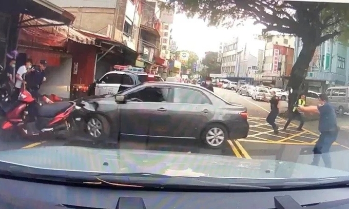 Cảnh sát Vụ Xã, thị trấn Nhân Ái, huyện Nam Đầu của đảo Đài Loan hôm 16/8 lập chốt chặn bắt người bị tình nghi khai thác gỗ lậu. Khoảng 15h40 chiều cùng ngày, một ô tô màu đen cố tình lao qua chốt chặn.