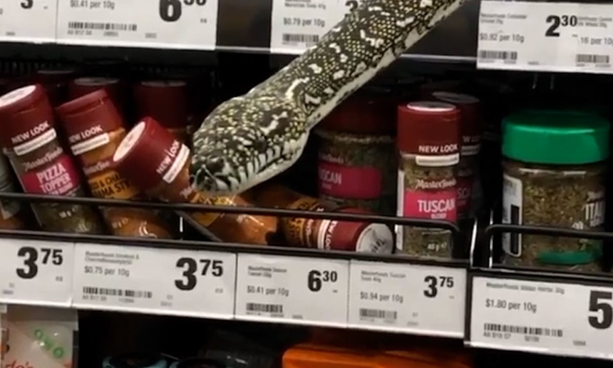 Bà Helaina Alati, một khách mua sắm, đang tìm kiếm lọ gia vị thì bất ngờ thấy con trăn “chỉ cách mặt 20 cm”. Bà kể lại: “Có vẻ như nó muốn chào hỏi”. Ban đầu, con trăn cuộn tròn sau những chai lọ đựng gia vị. “Có lẽ hàng chục người đã đi qua nó”, bà Alati nói.