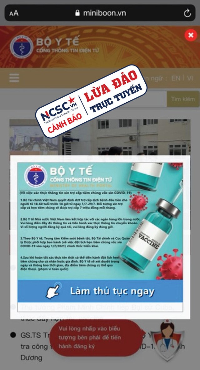 Ngoài ra, các đối tượng lừa đảo còn sử dụng mạng xã hội và các diễn đàn trực tuyến để quảng bá dịch vụ tiêm vaccine, bán các sản phẩm có khả năng phòng ngừa virút để lừa nạn nhân.