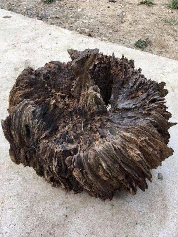Cây thông có "khối u" như vậy rất hiếm, ước tính khúc gỗ này đã vài chục năm tuổi. Mặc dù nhìn bề mặt của nó hơi mục nát nhưng thực ra bên trong vẫn còn tốt.