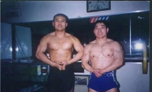 Ngụy Lôi (trái) khoe cơ bắp trên mạng. Ảnh: Sina