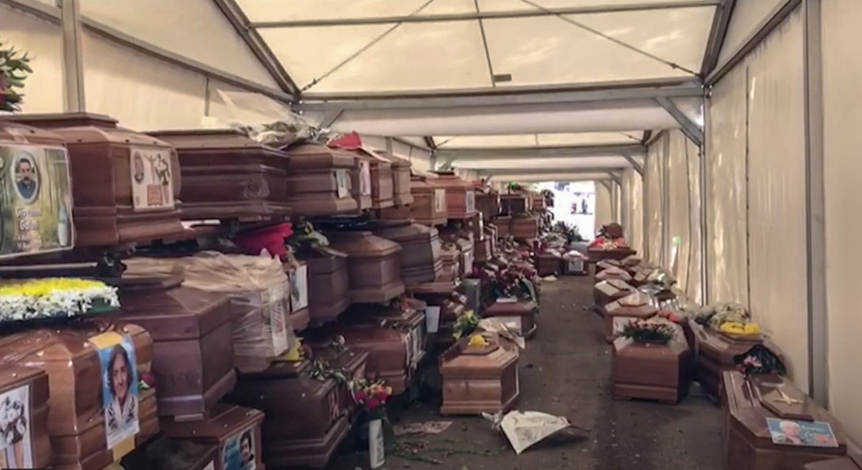 Sự việc rùng rợn xảy ra tại Nghĩa trang Rotoli ở Palermo, Italy sau khi số người tử vong do Covid-19 tăng cao đồng thời các hạn chế trong đợt giãn cách xã hội đã làm trì hoãn việc chôn cất, ứ đọng số quan tài chứa thi thể đợi xử lý. Gần 1.000 quan tài tại đây gồm 733 chiếc được xếp chồng lên nhau trên các kệ và 242 chiếc còn lại đang được cất giữ trên sàn nhà kho.