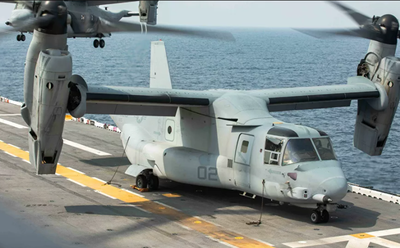 Trong biên chế "phi đội tương lai" còn có 2 máy bay quân sự cánh quạt nghiêng CMV-22B. Ưu điểm của loại máy này là động cơ giống như động cơ được trang bị cho các máy bay chiến đấu F-35C.
