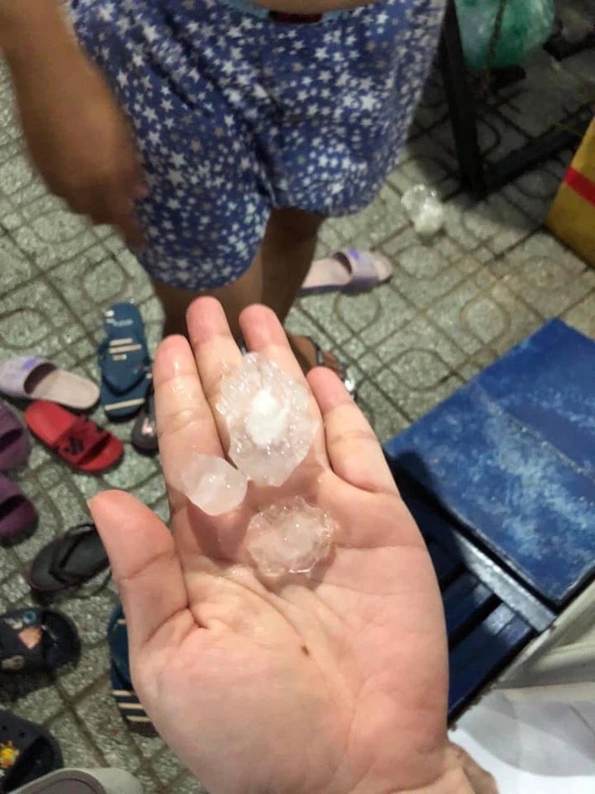 Anh Hoàng Nhất (TP. Thủ Đức, quận 9 cũ) cho biết: “Tôi đang ở trong nhà thì nghe tiếng “bụp bụp” trên mái, khi mở cửa thì thấy trời đang mưa, có vài viên đá bị rơi. Tôi gọi hỏi bạn bè xung quanh thì cũng thấy có mưa đá”.