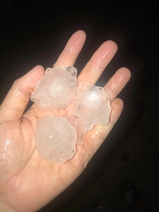Theo người dân, lượng mưa đá xảy ra trên diện rộng và người dân đều nhặt được từng viên đá.