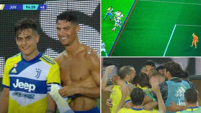 Phút đá bù thứ tư hiệp hai, khi tỷ số đang là 2-2, Federico Chiesa tạt bóng từ cánh phải vào để Ronaldo bật cao đánh đầu tung lưới chủ nhà. Trọng tài biên không căng cờ báo việt vị, nên trọng tài chính Ivano Pezzuto công nhận bàn thắng cho siêu sao 36 tuổi.