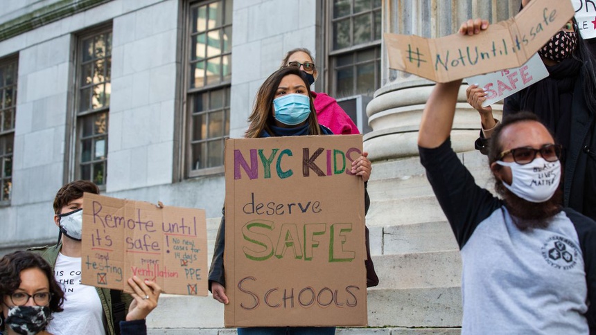 Chính quyền thành phố New York dự định sẽ cho học sinh trở lại trường học, dừng học online vào ngày 13/9 tới. Ảnh: Gothamist.