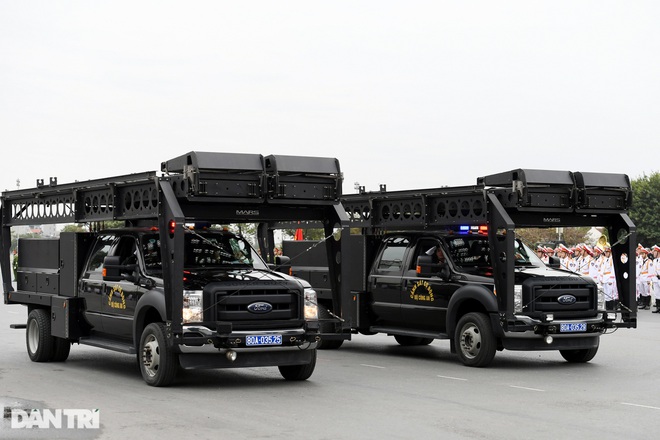 Khi về Việt Nam, những chiếc xe Ford F550 Super Duty được trang bị thêm nhiều tính năng vũ trang và chống bạo động chuyên dụng phù hợp. Xe có thể chở được 5 người trong cabin, 10 chiến sĩ trên nóc xe và thùng sau, được trang bị hệ thống giáp bọc thép cấp độ B6, có thể phóng thang đôi với độ vươn 7,6 m tác chiến nhanh phục vụ công tác chống khủng bố tại sân bay, bến cảng, cao ốc...