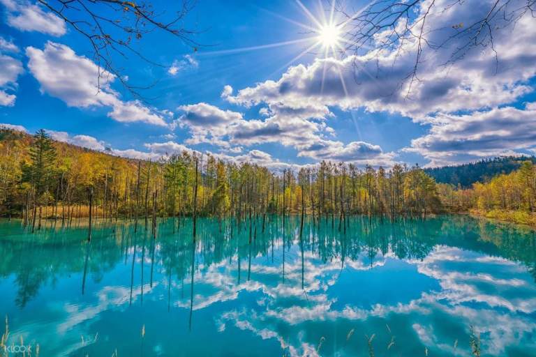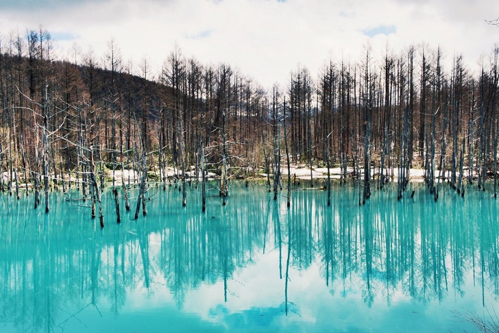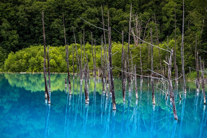 Biei, Nhật Bản là nơi có một hồ nước màu xanh ngọc bích tuyệt đẹp. Hồ xanh Shirogane được tạo ra sau một vụ phun trào núi lửa năm 1988. Giống như các hồ khoáng phát sáng phát sáng ở Yellowstone, hoạt động bơi lội ở hồ xanh dường như là không thể bởi nước vô cùng độc hại với con người.