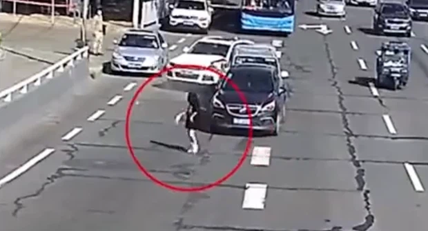 Sự việc được cho là xảy ra tại thành phố Lan Châu, tỉnh Cam Túc. Cô gái trong đoạn clip có vẻ đang rất mải mê với chiếc điện thoại của mình khi đang đi qua đường.