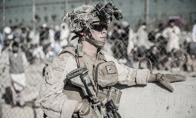 Một binh sĩ thủy quân lục chiến Mỹ tham gia đảm bảo an ninh tại sân bay Hamid Karzai ở thủ đô Kabul, Afghanistan ngày 26/8. Ảnh: USMC.