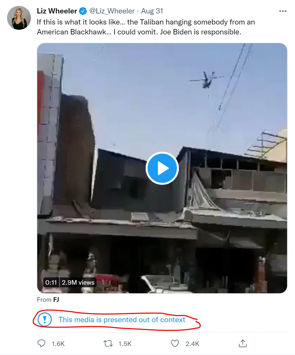 Nhiều người thậm chí còn lấy video này để chỉ trích Tổng thống Joe Biden. Twitter đã đánh dấu video chưa xác định bối cảnh.