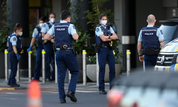 Cảnh sát bảo vệ quanh khu LynnMall ở Auckland (New Zealand), nơi xảy ra vụ tấn công khủng bố ngày 3-9 - Ảnh: THE GUARDIAN/GETTY IMAGES