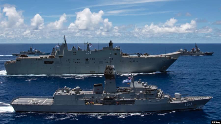 Tàu chiến Úc cùng với hạm đội Mỹ và Nhật Bản đã tiến hành các cuộc tập trận quân sự trên Biển Đông. (Ảnh: Hải quân Hoa Kỳ)