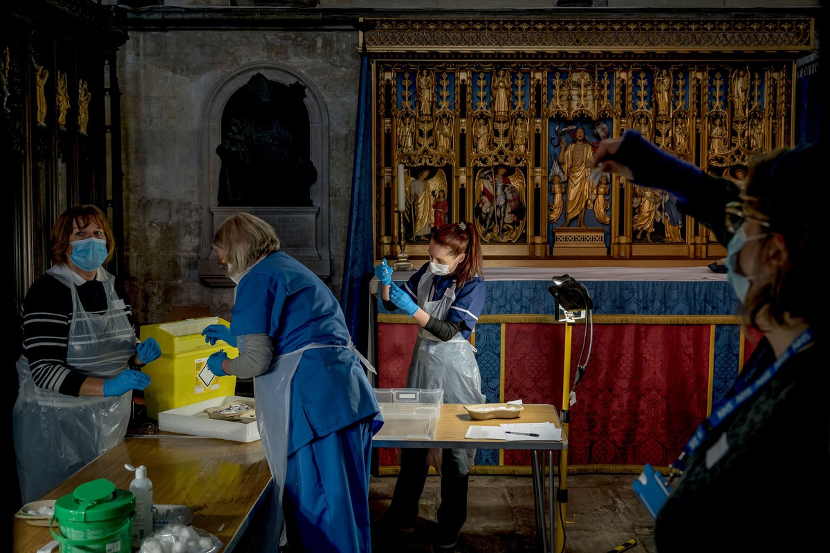 Đến nay, 90% người trưởng thành ở Anh đã được tiêm ít nhất một mũi vaccine Covid-19. Ảnh: New York Times.
