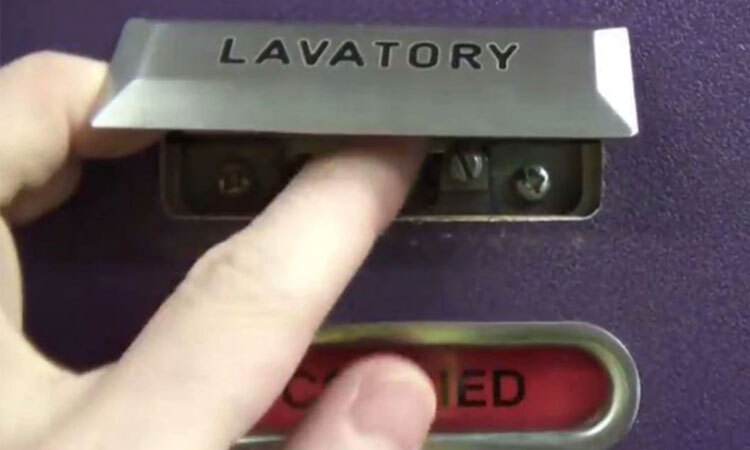 Chiếc nút nằm ngay bên trong bảng hiệu kim loại gắn trên cửa có chữ "lavatory" (nhà vệ sinh). Khi bạn kéo miếng kim loại này lên, nó sẽ hiện ra một cái chốt. Chốt này khi được xoay, khóa cửa phòng vệ sinh xoay theo và cửa được mở. Điều này giải thích lý do các tiếp viên có thể mở cửa nhà vệ sinh từ bên ngoài, dù khách đã khóa ở bên trong.