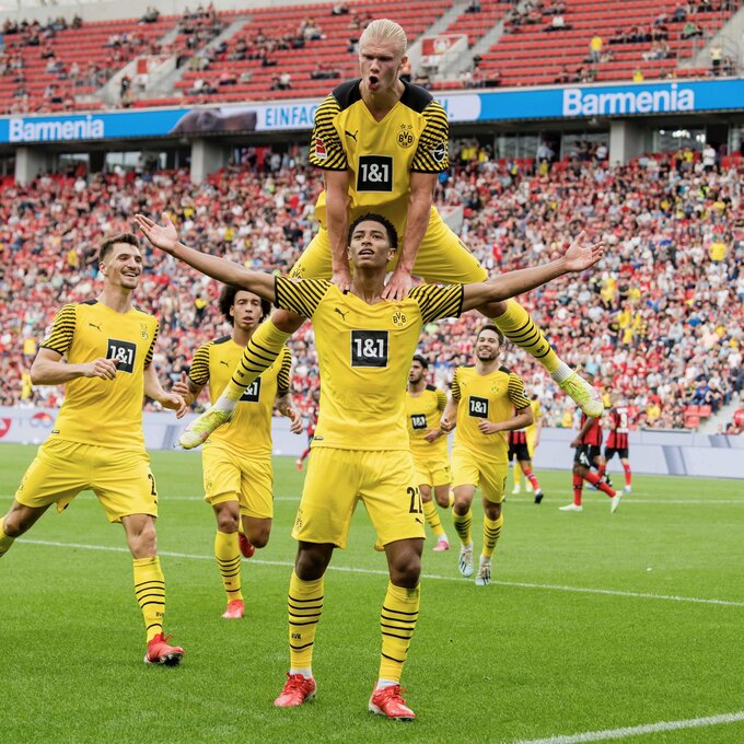 Haaland là ngôi sao sáng nhất trong màn rượt đuổi tỷ số này, khi góp hai trong bốn bàn, đều là các bàn quyết định, giúp Dortmund đảo ngược tình thế. Phút 37, trung phong người Na Uy đánh đầu gỡ hoà 1-1 sau đường tạt từ phải vào của Thomas Meunier. Tới phút 77, sau khi VAR xác định trung vệ Leverkusen Odlion Kossounou phạm lỗi vung tay trúng mặt Marco Reus trong 16m50, Dortmund được hưởng phạt đền và Haaland một lần nữa đánh bại thủ môn Lukas Hradecky để ấn định chiến thắng 4-3 cho đội khách.