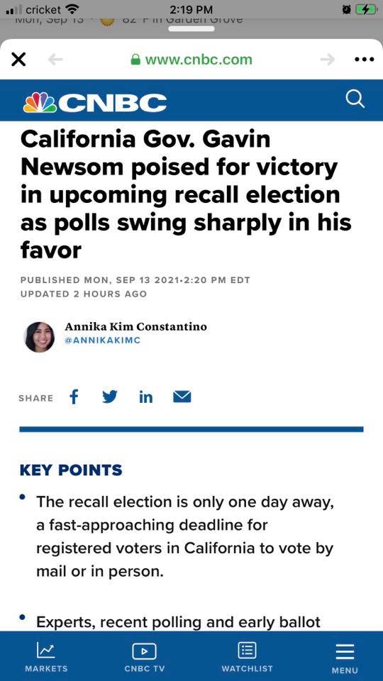Thống đốc California Gavin Newsom đã sẵn sàng chiến thắng trong cuộc bầu cử thu hồi sắp tới khi các cuộc thăm dò nghiêng về phía ông
