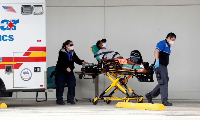 Một bệnh nhân được chuyển khỏi xe cứu thương tại bệnh viện ở Clearwater, bang Florida hôm 3/8. Ảnh: Reuters.