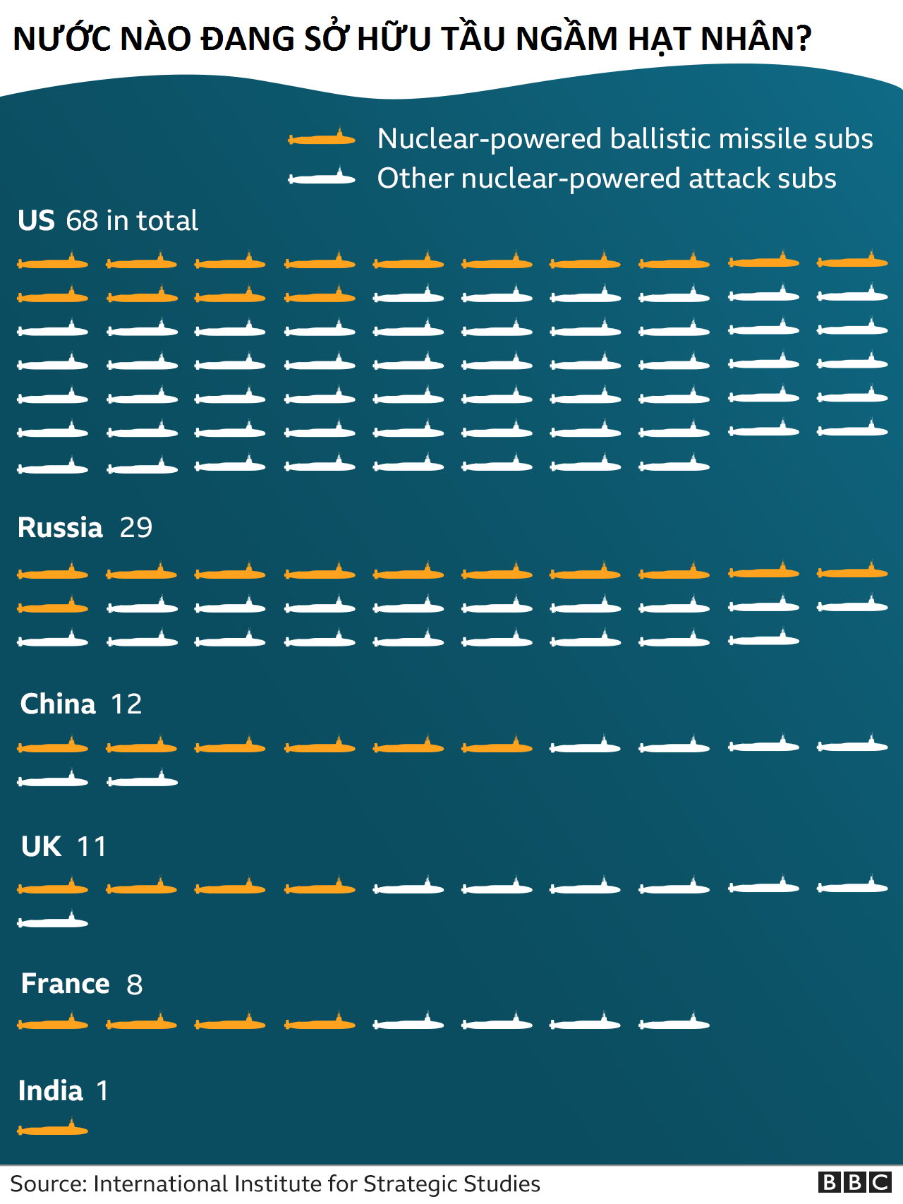 Chúng có thể hoạt động ngầm trong nhiều tháng và bắn tên lửa ở khoảng cách xa hơn - mặc dù Úc cho biết họ không có ý định đưa vũ khí hạt nhân vào các tàu này.