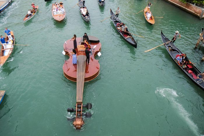 Các nhạc công đã hòa tấu bản 'Four Seasons' của Vivaldi trên một cây vĩ cầm khổng lồ, trôi dọc theo những kênh đào nổi tiếng ở Venice (Italy). Thuyền vĩ cầm mang tên "Violin of Noah" dài khoảng 12 m, được làm từ nhiều loại gỗ khác nhau. Thuyền có một động cơ điện thân thiện với môi trường để di chuyển trên mặt nước.