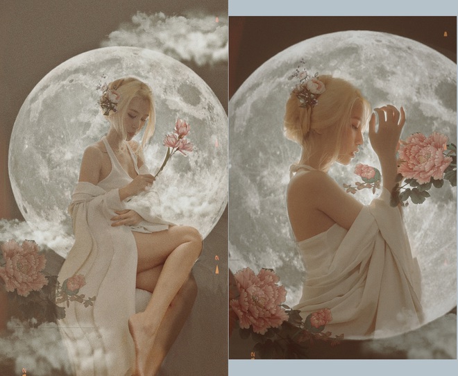 Chia sẻ về bộ ảnh đón Trung thu, Băng Ngân cho biết: "Mình lướt mạng thì thấy những bức tranh vẽ cô gái dưới mặt trăng rất thu hút, nên muốn thử biến nó thành hiện thực xem thế nào. Vì dịch bệnh, giãn cách nên không thể có đủ đạo cụ, phụ kiện, nên mình dùng những thứ có sẵn tại nhà để chụp, rồi dùng các app chỉnh ảnh để ghép cảnh, trau chuốt lại".