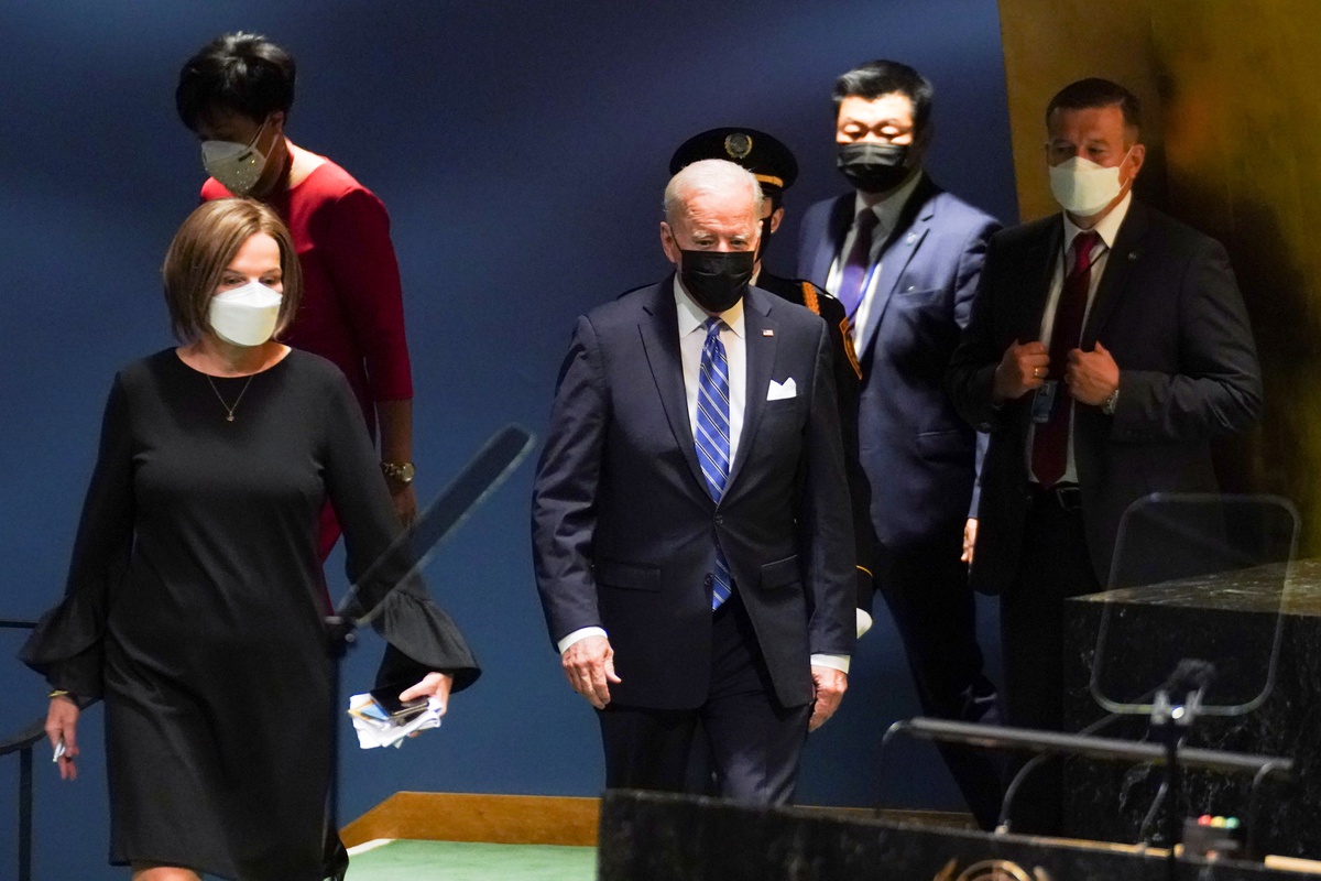 Bài phát biểu tại Đại hội đồng cũng diễn ra trong lúc Mỹ chịu sức ép quốc tế sau khi rút quân khỏi Afghanistan, dẫn đến việc Taliban lên nắm quyền và tạo ra ḍng người tị nạn t́m cách rời khỏi nước này. Tổng thống Biden bảo vệ quyết định rút quân trong hỗn loạn của Mỹ ở Afghanistan. Người đứng đầu Nhà Trắng nói rằng đây là bước đi cần thiết trong chính sách xoay trục của Mỹ, nhằm tập trung vào những thách thức toàn cầu từ các đối thủ ư thức hệ, đại dịch Covid-19 và biến đổi khí hậu.
