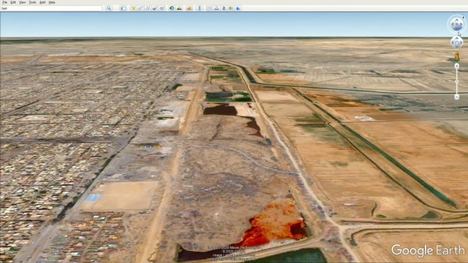 Có ai ngờ được rằng một vùng nước đỏ những tưởng chỉ có trong các bộ phim khoa học viễn tưởng lại hiển hiện ngay trên Google Earth ở tọa độ 33.396157° vĩ Bắc, 44.486926° kinh Đông, ở ngoại ô thành phố Sadr, Iraq.